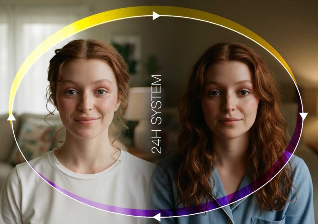 Une approche jour & nuit, pensée pour accompagner le corps sur la durée, sans le forcer.